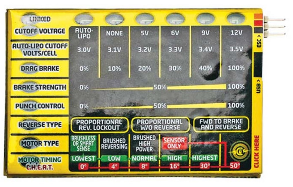 Este é Cartão de confirguração de carro portátil Castle Creations para programação do ESC Castle Creations